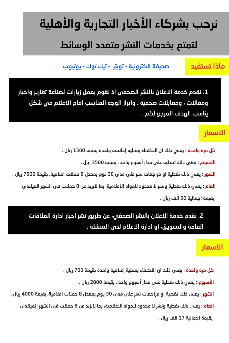 اعلانات صفحة شركاء الاخبار ووكالات العلاقات العامة والتسويق شاهد الاسعار والخدمات