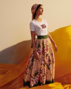 ﻭﺗﻀــﻢ ﺍﻟﺘﺸــﻜﻴﻠﺔ ﻓﺴــﺎﺗﻴﻦ ﺍﻟﺸــﻴﻔﻮﻥ ﺍﻟﻤﻨﺴــﺪﻟﺔ، ﻭﻗﻤﺼــﺎﻥ ﺍﻟﺒــﻮﺑﻠﻴﻦ، ﻭﻛﻨــﺰﺍﺕ ﺣﺮﻳــﺮ ﺗﺸـــﺎﺭﻣﻴﻮﺯ. ﻭﺗﺘﻤﻴـــﺰ ﺑﺄﻗﻤﺸـــﺘﻬﺎ ﺍﻟﺘـــﻲ ﺗﺴﺘﺤﻀـــﺮ ﺟﻤـــﺎﻝ ﺃﻟـــﻮﺍﻥ ﺍﻷﺣﺠـــﺎﺭ ﺍﻟﻜﺮﻳﻤـــﺔ ﺍﻟﻄﺒﻴﻌﻴـــﺔ ﻣﺜـــﻞ ﺍﻟﻴﺸـــﻢ ﺍﻷﺧﻀـــﺮ، ﻭﺍﻟﺰﺑﺮﺟـــﺪ، ﻭﺍﻟﻜـــﻮﺍﺭﺗﺰ ﺍﻟـــﻮﺭﺩﻱ ﻭﺗـــﺰﺩﺍﻥ ﺑﻄﺒﻌـــﺎﺕ ﺍﻟــﻮﺭﻭﺩ ﻟﺘﺴﺘﺤﻀــﺮ ﺃﻧﺎﻗــﺔ ﺍﻷﻭﺷــﺤﺔ ﺍﻟﻤﺰﺧﺮﻓــﺔ. ﻭﺯﻳﻨــﺖ ﺍﻷﻧﻤــﺎﻁ ﻧﻔﺴــﻬﺎ ﺍﻟﻘﻄــﻊ ﻏﻴــﺮ ﺭﺳــﻤﻴﺔ ﻣﺜ ــﻞ ﻗﻤﺼ ــﺎﻥ ﺍﻟـــ “ﺗ ــﻲ ﺷ ــﻴﺮﺕ” ﺍﻟﻤﻮﺷــﺎﺓ ﺑﻄﺒﻌ ــﺎﺕ ﻣﻤﻴ ــﺰﺓ، ﻭﺍﻟﺴـــﺮﺍﻭﻳﻞ ﺍﻟﻀــﻴﻘﺔ، ﻭﺍﻟﺒﻠــﻮﺯﺍﺕ ﺍﻟﻮﺍﺳــﻌﺔ. ﻭﻳﺘﺠﻠــﻰ ﺗﻤﻴــﺰ ﺍﻟﺘﺸــﻜﻴﻠﺔ ﻓــﻲ ﺇﻛﺴﺴــﻮﺍﺭﺍﺗﻬﺎ: ﻣﺜــﻞ ﺣــﺬﺍء “ﺑﻮﺭﺗﻮﻓﻴﻨــﻮ” ﺍﻟﺮﻳﺎﺿــﻲ ﺍﻟﻤﻮﺷــﻰ ﺑﻠﻤﺴــﺎﺕ ﺫﻫﺒﻴــﺔ، ﻭﺃﺣﺬﻳــﺔ “ﻣﻴــﻮﻝ” ﺍﻟﺠﻠﺪﻳــﺔ ﺍﻟﻤﻐﻄــﺎﺓ ﺑﺎﻟﻜﺮﻳﺴــﺘﺎﻝ ﺍﻟﺤــﺮﺍﺭﻱ، ﻭﺍﻷﺣﺬﻳــﺔ ﺍﻟﻤــﺰﻭﺩﺓ ﺑﺤــﺰﺍﻡ ﻳﻠــﻒ ﺍﻟﻜﺎﺣــﻞ ﻣــﻦ ﺟﻠــﺪ ﺍﻟﻌﺠـﻞ ﺫﻭ ﺍﻟﻠـﻮﻥ ﺍﻟﻌﻨـﺎﺑﻲ ﻭﺍﻟﻤﺰﺩﺍﻧـﺔ ﺑﺸـﻌﺎﺭ DG ﻣﻌـﺪﻧﻲ ﺫﻫﺒـﻲ. ﻛﻤـﺎ ﺗﺄﻟﻘـﺖ ﻛـﻞ ﻣـﻦ ﺣﻘﻴﺒــﺔ “ﺳﻴﺴــﻴﻠﻲ” ﺍﻷﻳﻘﻮﻧﻴــﺔ ﻭﺍﻟﺤﻘﺎﺋــﺐ ﺍﻟﺘــﻲ ﺗﺤﻤــﻞ ﺷــﻌﺎﺭ DG ﺑــﻨﻔﺲ ﺗــﺪﺭﺟﺎﺕ ﺍﻷﻟﻮﺍﻥ، ﻭ رُﺻﻌﺖ ﺑﺄﺣﺠﺎﺭ ﺍﻟﻜﺮﻳﺴﺘﺎﻝ ﺍﻟﻤﻠﻮﻧﺔ. ﺃﻣــﺎ ﺍﻟﻘﻄــﻊ ﺍﻟﺮﺟﺎﻟﻴــﺔ ﻓﺎﺳــﺘﻮﺣﻴﺖ ﻣــﻦ ﺍﻷﻟــﻮﺍﻥ ﺍﻟﺪﺍﻓﺌــﺔ ﻟــﻸﺭﺽ ﻭﺍﻷﺣﺠــﺎﺭ ﺍﻟﻜﺮﻳﻤــﺔ، ﻭﻳﺰﻳﻨﻬﺎ ﺍﻟﺸﻌﺎﺭ ﺍﻷﻳﻘﻮﻧﻲ ﻟﻌﻼﻣﺔ ﺩﻭﻟﺘﺸﻲ ﺁﻧﺪ ﻏﺎﺑﺎﻧﺎ .( DG ) ﻭﺗﺘﻤﻴــﺰ ﻫــﺬﻩ ﺍﻟﻘﻄــﻊ ﺑﺄﻟﻮﺍﻧﻬــﺎ ﺍﻟﺠﺬﺍﺑــﺔ ﺍﻟﺘــﻲ ﺗﺘﻨــﻮﻉ ﺑــﻴﻦ ﺗــﺪﺭﺟﺎﺕ ﺍﻷﻟــﻮﺍﻥ ﺍﻟﺮﻣﻠﻴــﺔ، ﻭﺍﻷﺣﻤــﺮ ﺍﻟﻘــﺎﺗﻢ، ﻭﻟــﻮﻥ ﺍﻟﺠﻠــﺪ ﺍﻟﻤــﺪﺑﻮﻍ، ﻭﻟــﻮﻥ ﺍﻟﺘﺮﺍﻛﻮﺗــﺎ، ﻭﻟــﻮﻥ ﺍﻟﻌﻘﻴــﻖ ﺍﻟﺒﺮﺗﻘــﺎﻟﻲ.