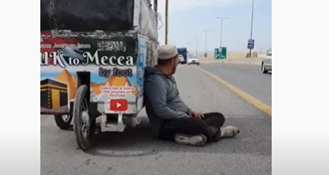 يقول آدم خلال ظهوره في مشهد فيديو متداول” قررت الذهاب من بريطانيا الى مكة لأداء فريضة الحج مشياً على الأقدام، وان شاء الله اكون بعد شهرين قد وصلت الى مكة”.