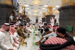 شارك صاحب السمو الملكي الأمير خالد الفيصل مستشار خادم الحرمين الشريفين أمير منطقة مكة المكرمة ، رجال الأمن والجهات المشاركة في خدمة ضيوف الرحمن طعام الإفطار في المسجد الحرام , بحضور معالي الرئيس العام لشؤون المسجد الحرام والمسجد النبوي الشيخ عبدالرحمن السديس، وقائد قوات أمن العمرة اللواء محمد البسامي، وعدد من القيادات المدنية والعسكرية.