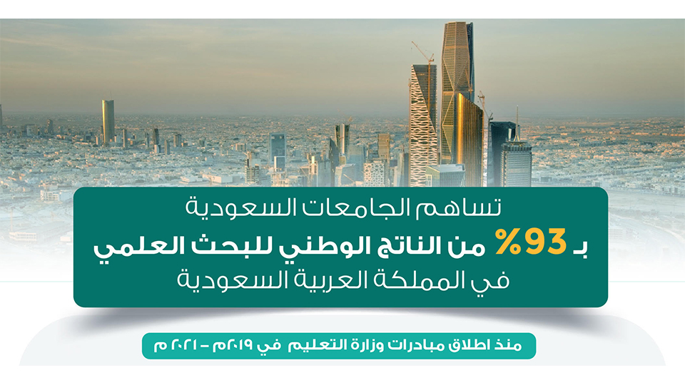 ساهمت الجامعات السعودية بنسبة 93% من الناتج الوطني للبحث العلمي، معزّزة جهود وزارة التعليم في دعم منظومة البحث والابتكار، وترجمةً لدورها المحوري في التحول نحو اقتصاد مستدام مبني على المعرفة، وتحقيق مستهدفات رؤية المملكة 2030.