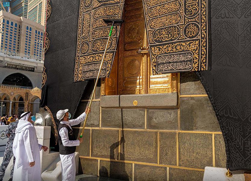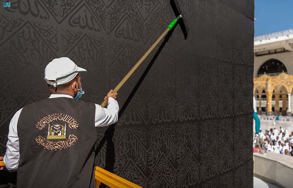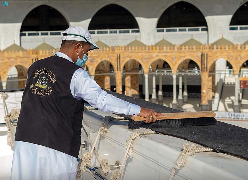 شاهد .. أعمال صيانة وتنظيف كسوة الكعبة المشرفة