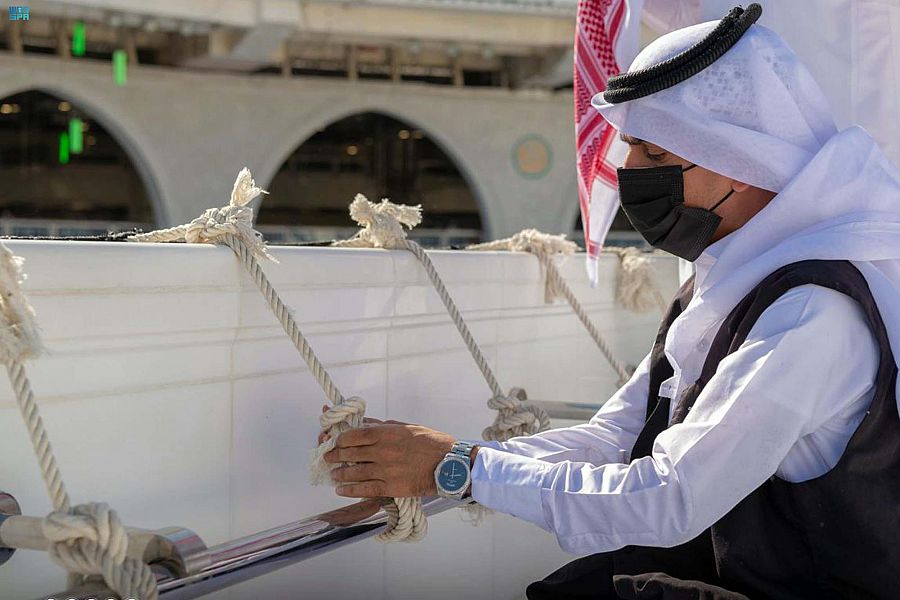 قامت وكالة مجمع الملك عبدالعزيز لكسوة الكعبة المشرفة ممثلة في إدارة صيانة كسوة الكعبة المشرفة بأعمال شد الحزام وصيانة ثوب الكعبة المشرفة ليحتفظ برونقه، إضافة إلى تثبيت أطرافه.