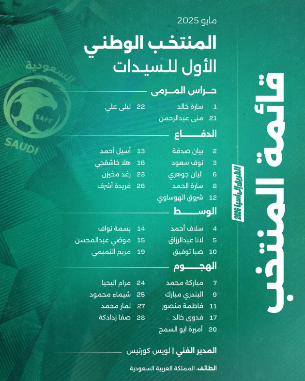 انطلق اليوم معسكر المنتخب السعودي الأول للسيدات في محافظة الطائف، الذي يستمر حتى يوم الخميس (12 يونيو 2025)، وذلك في إطار الاستعدادات المكثفة للمشاركة في تصفيات كأس آسيا (2026),