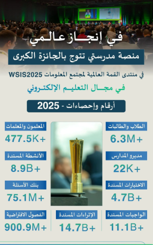 “مدرستي” تحصد الجائزة الكبرى في منتدى القمة العالمية لمجتمع المعلومات 2025