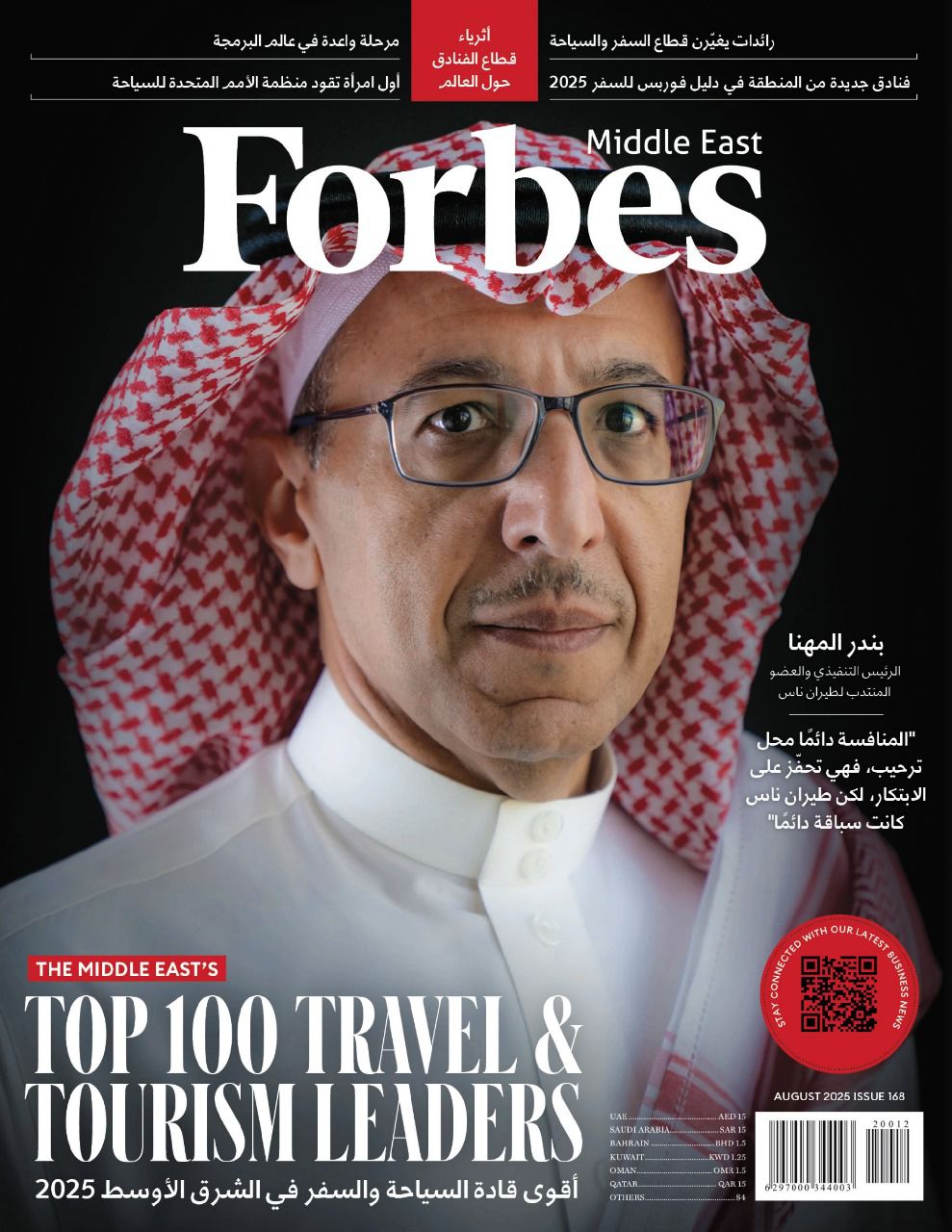 تصدّر بندر المهنا، الرئيس التنفيذي والعضو المنتدب لطيران ناس – الطيران الاقتصادي الرائد عالميًا والأول في الشرق الأوسط – غلاف عدد أغسطس من مجلة فوربس الشرق الأوسط، التي نشرت معه مقابلة حصرية تحت عنوان “المسار الجديد” الذي يرسمه طيران ناس لقطاع الطيران الاقتصادي.