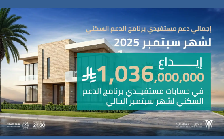 أعلن صندوق التنمية العقارية اليوم، إيداع مليارٍ وستة وثلاثين مليون ريال، في حسابات مستفيدي برنامج الدعم السكني من وزارة البلديات والإسكان، والصندوق العقاري، عن شهر سبتمبر 2025م.