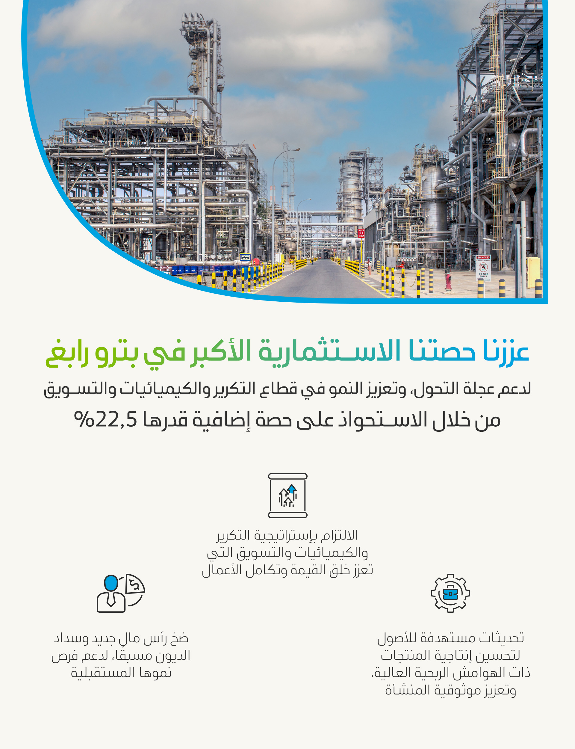 أرامكو السعودية أصبحت المساهم الأكبر مما يزيد من قدرتها على دعم تحوّل بترورابغ