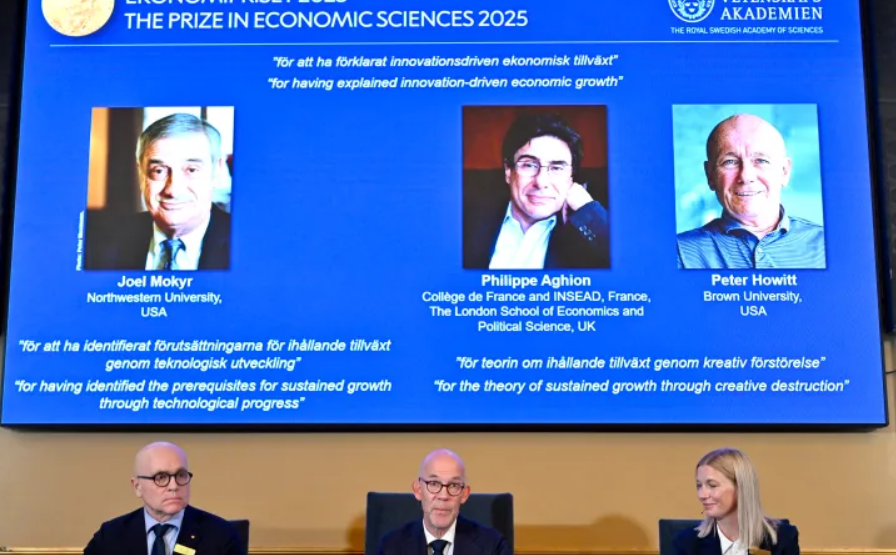 فاز الأمريكي جويل موكر، والفرنسي فيليب أجيو، والكندي بيتر هاويت، اليوم، بجائزة نوبل في الاقتصاد لعام 2025، تقديرًا لأبحاثهم حول الابتكار وقوى “التدمير الإبداعي” ودورها في تحفيز النمو الاقتصادي ورفع مستويات المعيشة عالميًا.