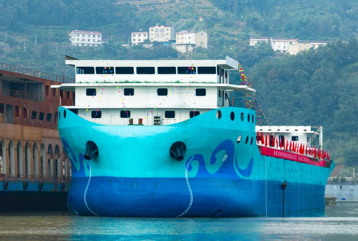 إطلاق أكبر سفينة شحن كهربائية بالكامل في الصين في مقاطعة هوبي