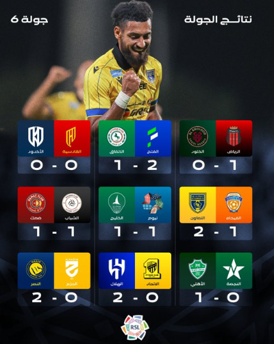 اختتمت اليوم, منافسات الجولة السادسة من الدوري السعودي للمحترفين لكرة القدم “دوري روشن”، إذ واصل فريق النصر صدارته بختام هذه الجولة برصيد (18) نقطة بفارق 3 نقاط عن التعاون صاحب المركز الثاني بـ (15) نقطة، وذلك بعد فوزه على نظيره الحزم بنتيجة (2-0) الذي بقي عند خمسة نقاط في المركز (14).