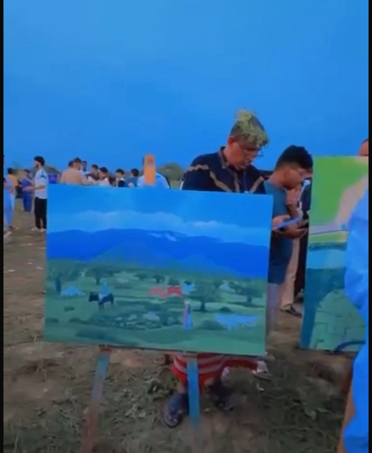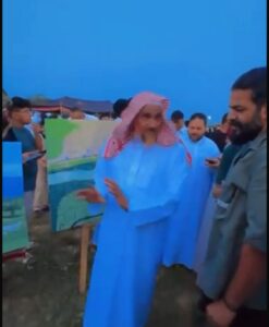 وخلال الجولة، توقّف أحد الزوّار طويلًا أمام لوحةٍ تجسّد ماضي مدينة بيش، وقد أبدى إعجابه الشديد بها، طالبًا شراءها.