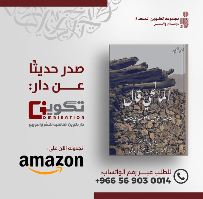 أعلنت دار تكوين للنشر والتوزيع عن صدور ديوان الشاعر الراحل محمد بن أحمد المالحي رحمه الله، تحت عنوان “المالحي قال بيت الناس ماهوب لي بيت”، والذي يحتوي على قصائد وصور للشاعر ومحتوى يستعرض سيرته.