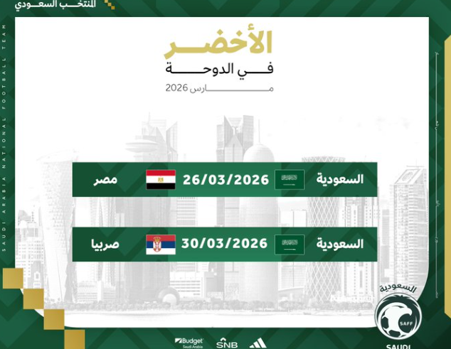 يخوض المنتخب السعودي الأول مباراتين وديتين خلال فترة أيام “FIFA” الدولية في شهر مارس المقبل، وذلك ضمن معسكره الإعدادي الذي سيُقام في دولة قطر خلال الفترة من 22 إلى 30 مارس، ضمن برنامج الإعداد لبطولة كأس العالمFIFA 2026™️، المقرر انطلاقها في شهر يونيو المقبل.