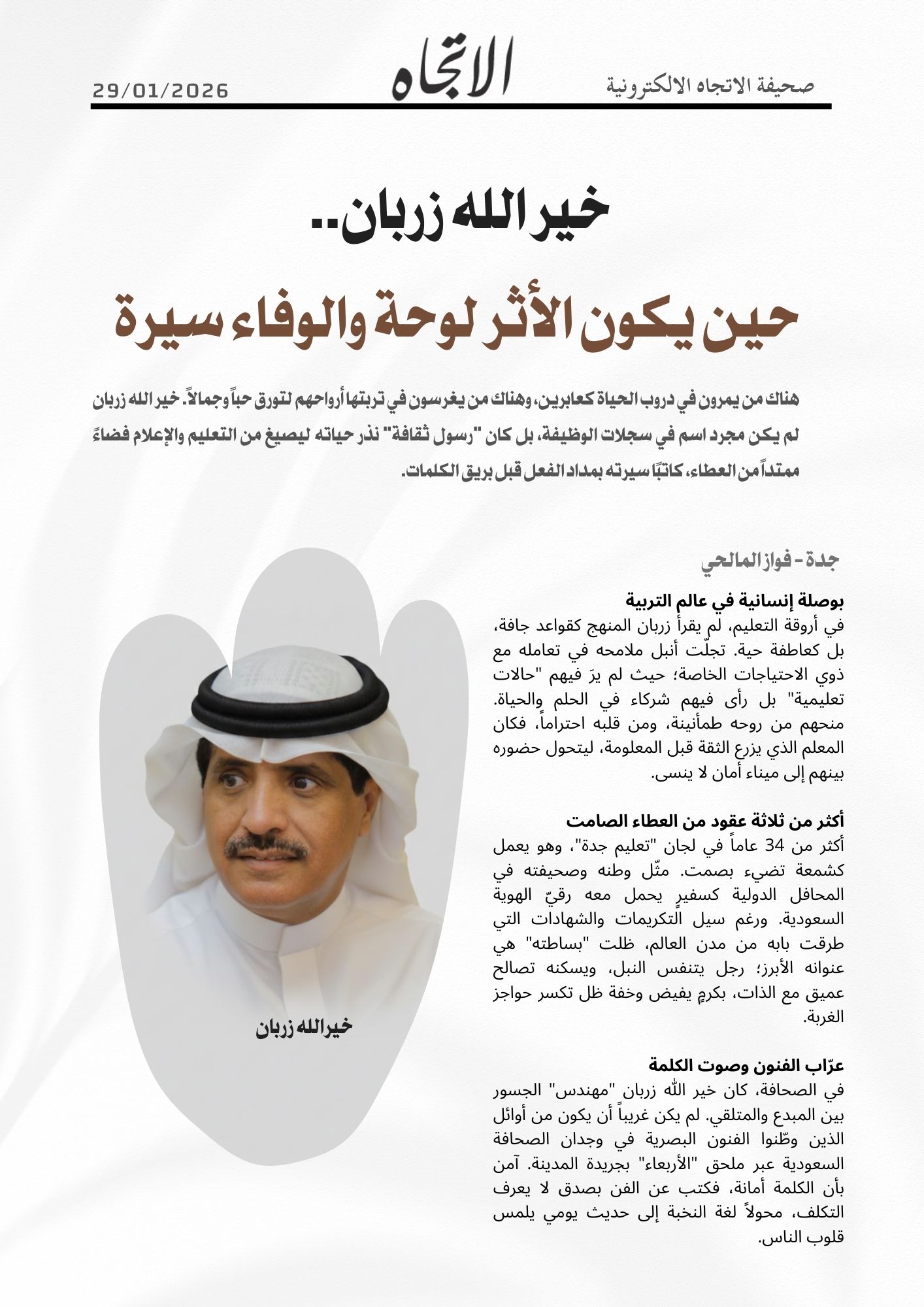 الرئيسية/الاتجاه D/الاتجاه D | خيرالله زربان .. حين يكون الأثر لوحة والوفاء سيرة الاتجاه D الاتجاه D | خيرالله زربان .. حين يكون الأثر لوحة والوفاء سيرة 2026-02-060 287 2026-02-060 287 فيسبوك X لينكدإن Tumblr بينتيريست Reddit VKontakte مشاركة عبر البريد طباعة