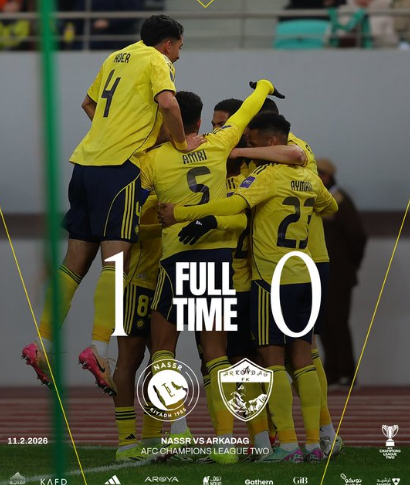 دوري أبطال آسيا 2: النصر يتغلب على أركاداغ في ذهاب دور الـ(16)