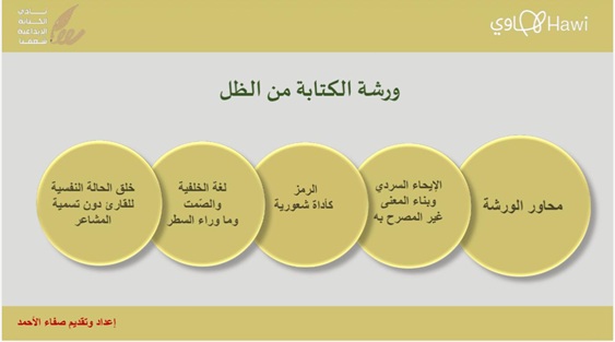 وتناولت الورشة عدة محاور ثرية، جاء في مقدمتها مفهوم الكتابة من الظل بوصفها كتابة تنصت لما لا يُقال، وتبحث في المساحات الخفية التي تتكون فيها الفكرة قبل أن ترى النور. وأكدت الأحمد أن الظل في النص ليس غيابًا، بل مساحة تأمل وصمت خصب، تتشكل فيه الرؤى بعيدًا عن المباشرة والتقريرية.