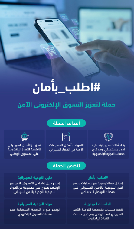 وتركز الحملة على نشر الوعي بأهمية الأمن السيبراني وتعزيز السلوكيات السيبرانية الآمنة لمختلف الفئات العمرية، من خلال مواد تثقيفية تتناول موضوعات عدة، من بينها التصيد الإلكتروني، وأهمية تفعيل أدوات الحماية من المخاطر السيبرانية، واستخدام التحقق الثنائي، وأمن التطبيقات، والتحديثات الأمنية، والتصفح الآمن عبر شبكة الإنترنت، وغيرها من الموضوعات التي تسهم في حماية مستهلكي خدمات التجارة الإلكترونية من التهديدات السيبرانية المتجددة.