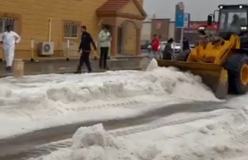 الباحة تكتسي بالبياض إثر تساقط البرد وهطول الأمطار صباح اليوم