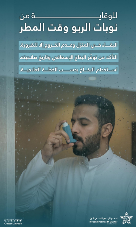 «سعود الطبية» تنبه مرضى الربو: التزام المنزل واستخدام البخاخ للوقاية وقت المطر