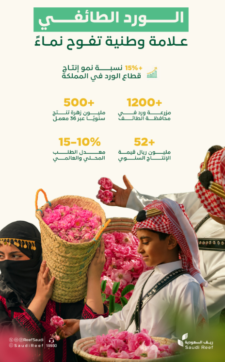 «ريف السعودية» يعلن نمو قطاع الورد بالطائف بأكثر من 15% سنوياً