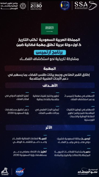 كأول دولة عربية .. المملكة تطلق مهمة فضائية ضمن برنامج آرتميس التابع لوكالة ناسا