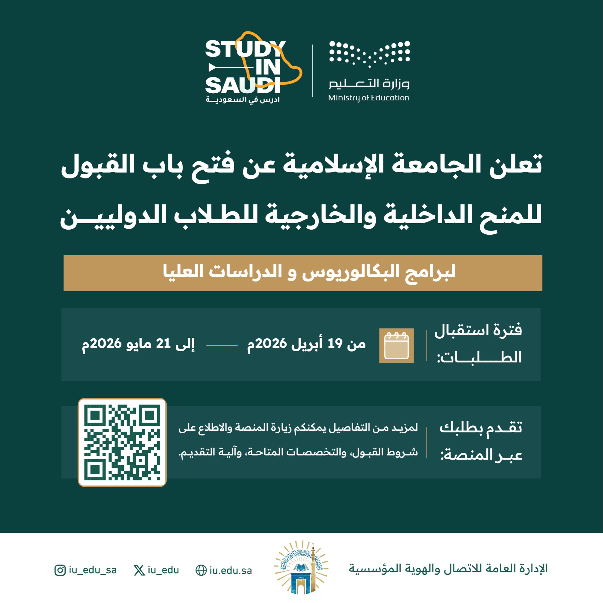 ويأتي ذلك ضمن إطار جهود الجامعة الإسلامية لتعزيز استقطاب الطلبة من مختلف دول العالم، ودعم التبادل الثقافي والعلمي، بما يسهم في ترسيخ رسالتها التعليمية ونشر المعرفة، ويتوافق مع مستهدفات رؤية المملكة 2030 في تطوير التعليم وتعزيز حضوره عالميًا.