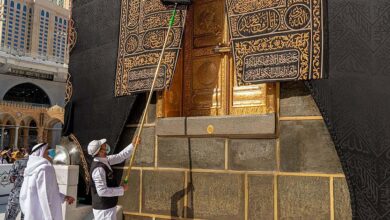 شاهد .. أعمال صيانة وتنظيف كسوة الكعبة المشرفة