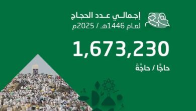 الاتجاه ـ مكة: أعلنت الهيئة العامة للإحصاء اليوم أن إجمالي أعداد الحجاج هذا العام 1446هـ بلغ (1,673,230) حاجًّا وحاجَّة، منهم…