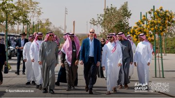 وزير الرياضة يستقبل ولي عهد بريطانيا ويصطحبه في جولة على مشروع المسار الرياضي