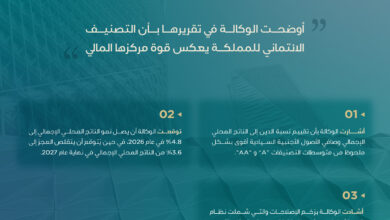 وكالة التصنيف الائتماني “فيتش” تؤكد التصنيف الائتماني للمملكة عند +A مع نظرة مستقبلية مستقرة
