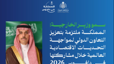 سمو وزير الخارجية: المملكة ملتزمة بتعزيز التعاون الدولي لمواجهة التحديات الاقتصادية العالمية خلال مشاركتها في دافوس 2026